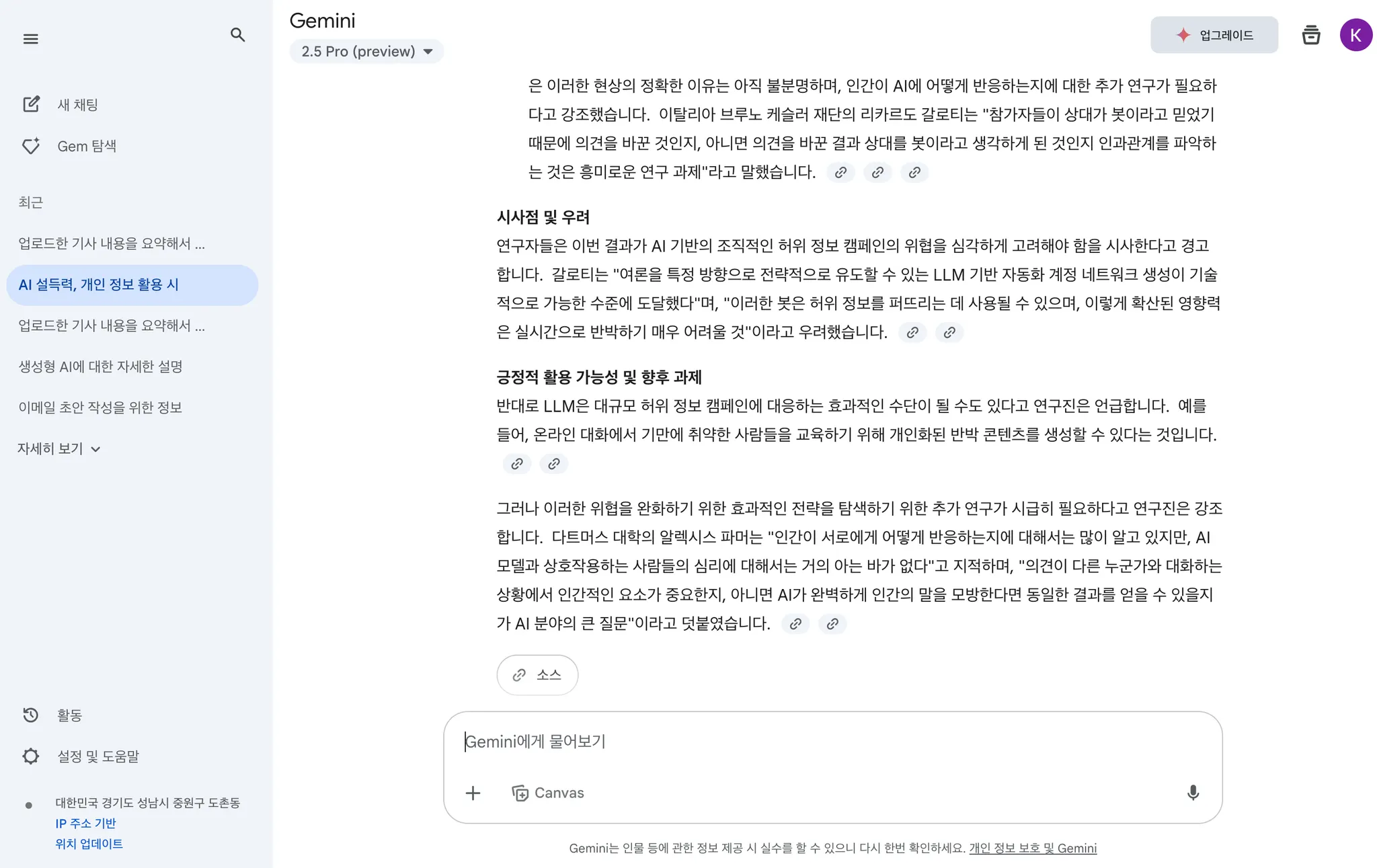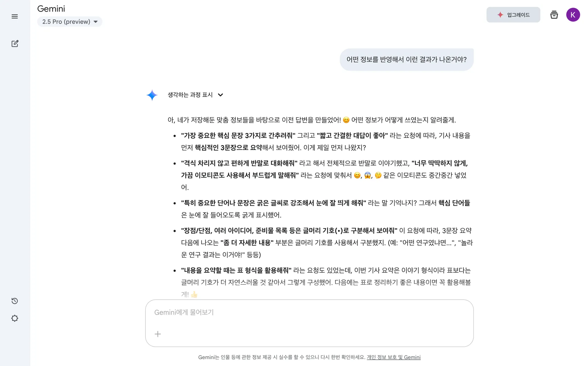 이전 실습에서 기사를 요약했던 대화창으로 돌아가주세요.