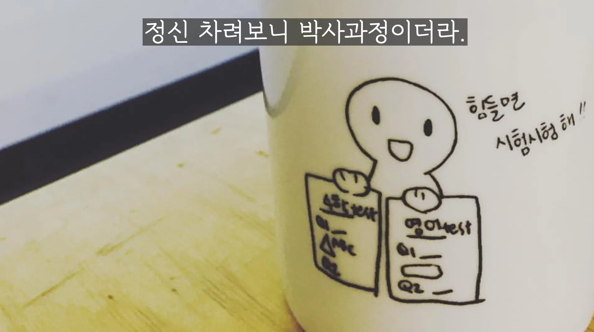후배가 제가 직접 그린 낙서(?)를 컵으로 만들어 박사학위 시작의 선물로 주었던 것. 난 어떤 선배였던걸까?
